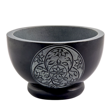 Natural dark stone bowl beautifully carved with a Floral Motif.