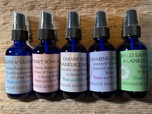 This is fine Silver Omani Frankincense and pure Palo Santo essential oil in spring water, the perfect way to get the aromatic rush of the sacred resin and wood without any smoke.