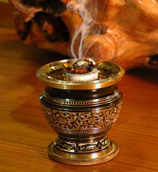 I recommend the use of a bit of foil under the incense to keep it from direct contact with charcoal. This keeps it from overheating too quickly and also keeps your censer cleaner.